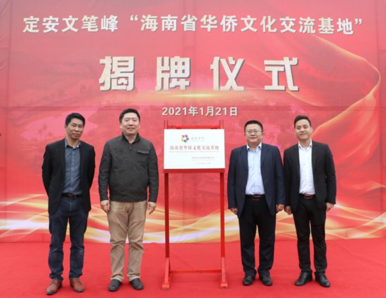 2021年1月21日,海南省僑聯和定安縣僑聯在定安文筆峰舉行“海南省華僑文化交流基地”揭牌儀式,這是我省首個掛牌的省級“華僑文化交流基地”。省僑聯黨組成員、秘書長李誠,定安縣委常委、統戰部部長陳明永,定安縣僑聯主席謝文博和文筆峰盤古文化旅游區總經理王克民,及文筆峰盤古文化旅游區員工等出席揭牌儀式。