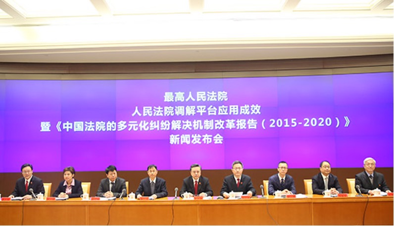 2月20日上午,中國僑聯等六部委參加最高人民法院舉行的人民法院調解平臺應用成效暨《中國法院的多元化糾紛解決機制改革報告(2015-2020)》新聞發(fā)布會。