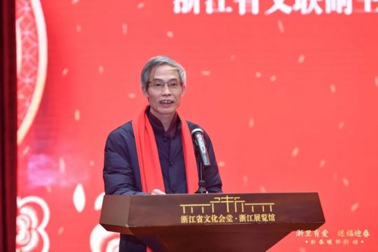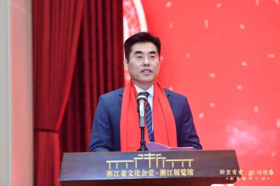 活動現場,浙江省委統戰部常務副部長王曉峰講話,他首先向各位書畫家、企業家的德行善舉,表示崇高的敬意。王曉峰說,今天邀請我省知名書畫家、企業家,通過“寫福、曬福、送福、祈福”的獨特方式,為浙籍海外僑胞、出國留學人員獻上家鄉人民的一片愛心,充分體現了省委、省政府對海外僑胞、出國留學人員的關心重視,充分體現了我省各界尤其是書畫界、企業界對海外僑胞、出國留學人員的情誼。