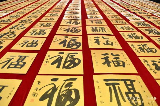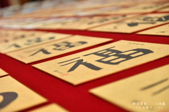 活動現場,書法之美溫暖人心。省書法家協會主席趙雁君,省書法家協會副主席兼秘書長何滌非,省書法家協會副主席、中國美院副院長沈浩,省書法家協會副主席胡小罕,省女書法家協會主席李軍,省書法家協會主席團委員兼副秘書長王義驊,省書法家協會主席團委員江吟、黃建新、黃壽耀、李硯,省書法家協會副秘書長王自力、陳峰、何來勝,省書法家協會理事朱長根、朱大焱、牟建閩、張球、蔣采、毛志良、林應輝等知名書畫家潑墨成福,以真、草、隸、篆、行等多種字體,創作出一幅幅各臻佳境的福字。