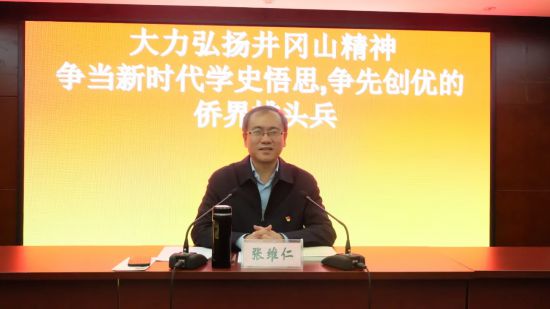 當天,張維仁副主席以“大力弘揚井岡山精神,爭當新時代學史悟思、爭先創(chuàng)優(yōu)的僑界排頭兵”為主題,為大家進行了一堂精彩的黨課輔導。在一個小時的黨課里,帶領大家從學習《習近平論中國共產黨歷史》中的“讓井岡山精神放射出新的時代光芒”文章為切入點,結合個人在中國井岡山干部學院的學習考察經歷,從井岡山根據(jù)地艱苦卓絕的鑄就過程,井岡山精神豐富深邃的實質內涵,井岡山革命先輩的錚錚風骨,井岡山精神歷久彌新的實踐意義等四個方面,緊緊圍繞浙江省僑聯(lián)工作職能,深入淺出地闡述了省僑聯(lián)的初心和使命,內容豐富、條理清晰、分析透徹。他說,面對新世情新國情新僑情,面對百年未有之大疫情和百年未有之中華民族偉大復興的大變局,我們要大力弘揚新時代井岡山精神,堅定執(zhí)著追理想、實事求是闖新路、艱苦奮斗攻難關、依靠群眾求勝利,切實發(fā)揮僑聯(lián)組織的獨特優(yōu)勢與作用,不忘初心擔使命,唯實惟先促發(fā)展,執(zhí)政為民聚僑心,戒奢守廉樹新風,全力推進“十四五”僑聯(lián)事業(yè)開好局、起好步,努力為忠實踐行“八八戰(zhàn)略”、奮力打造“重要窗口”,爭創(chuàng)“社會主義現(xiàn)代化先行省”作出僑界更大貢獻。