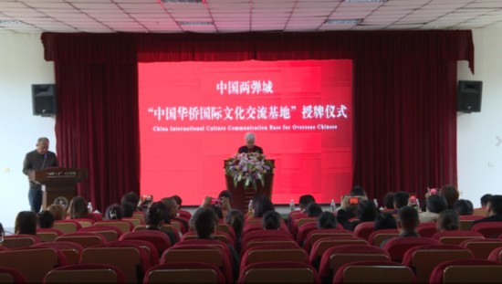 3月22日,“中國華僑國際文化交流基地”授牌儀式在四川梓潼“中國兩彈城”隆重舉行。中國僑聯顧問、原副主席唐聞生向“中國兩彈城”授牌。中國僑聯副主席、四川省僑聯主席劉以勤,綿陽市委常委、副市長呂劍,四川省僑聯副主席、綿陽市僑聯主席蔣蓓,梓潼縣委書記周琳等參加儀式,并觀看了情景劇《在烈火中永生》。