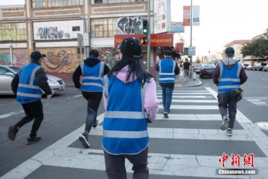 當地時間3月6日,一支由美國加州奧克蘭唐人街商戶和居民自發組成的義工安全巡邏隊在唐人街巡邏。新冠疫情暴發以來,美國一些城市連續發生針對亞裔的歧視和暴力犯罪事件。最近幾個月,歧視和暴力犯罪再次出現上升趨勢。美國加州奧克蘭唐人街的商戶和居民自發組成多個義工安全巡邏隊,維護當地安全。 中新社記者 劉關關 攝