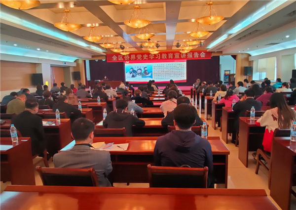 4月23日下午,寧夏僑聯在銀川市舉辦“全區僑界黨史學習教育宣講報告會”,黨史學習教育寧夏區委宣講團成員、寧夏區委黨校副校長李培文作宣講報告。寧夏僑聯八屆委員會委員、全區各級僑聯組織主要負責同志、歸僑僑眷和僑資企業代表及寧夏僑聯機關全體干部職工100余人參加宣講報告會。寧夏僑聯副主席鄭大鵬主持會議。