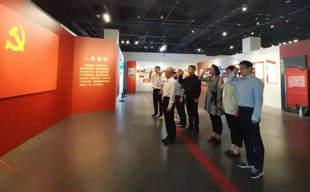 參觀結(jié)束時,全體黨員面對黨旗,由支部書記張毅同志領(lǐng)誓,莊嚴地重溫了入黨誓詞。