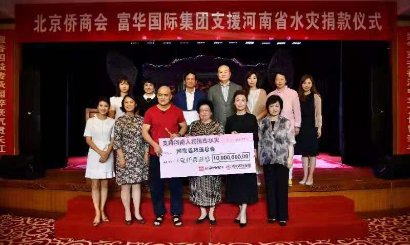 7月30日,中國僑商聯(lián)合會榮譽(yù)會長單位、富華國際集團(tuán)向河南災(zāi)區(qū)捐款儀式在中國紫檀博物館舉行。中國僑聯(lián)副秘書長、經(jīng)濟(jì)科技部部長趙紅英,河南省駐京辦副主任孫蘭紅,中國僑商聯(lián)合會榮譽(yù)會長、富華國際集團(tuán)董事局主席陳麗華,中國僑商聯(lián)合會常務(wù)副會長、富華國際集團(tuán)總裁趙勇等出席捐款儀式。