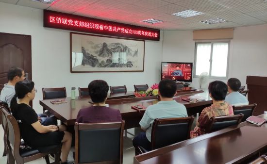 同安區僑聯組織全體機關工作人員收看慶祝中國共產黨成立100周年大會,會后組織黨員一起討論,分享觀后感。