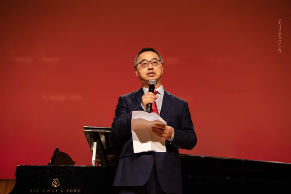 肖業文副總領事在致辭中說:“大家晚上好。很高興出席由新西蘭華星藝術團主辦的‘歌聲飄過一百年’奧克蘭僑界慶祝中國共產黨成立100周年音樂會。連日來,海內外慶祝中國共產黨百年華誕達到高潮,新西蘭的華僑華人也舉辦了形式多樣的慶;顒印