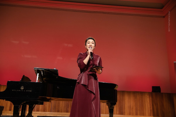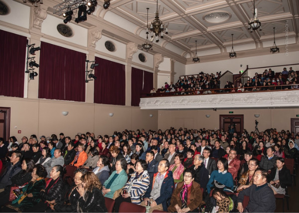 李芬團長在講話時說:“今晚我們相聚在歌聲‘飄過一百年-中國經典藝術歌曲音樂會’的現場,在此我謹代表新西蘭華星藝術團向在座的到來表示真摯的感謝。感謝您們的到來和支持!中華文化歷史悠久,經典歌曲,百年傳唱!為了致敬和重溫經典,促進中新文化的交流,并在百年華誕之際,我們新西蘭華星藝術團的藝術家們將以演唱中國百年來的經典藝術歌曲的形式抒發我們海外華人華僑的愛國之情!希望大家跟我一起享受這個美好的夜晚,預祝今晚演出圓滿成功!再次感謝大家的到來!”