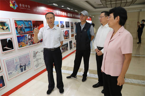 中國僑聯顧問、中國華僑攝影學會會長王宏、文化交流部部長劉奇、副部長邢硯莊等一同觀看展覽。