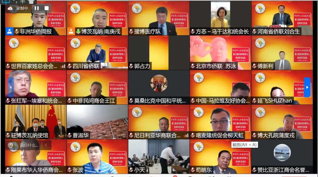 第三屆非洲華僑華人民間外交論壇以線(xiàn)上線(xiàn)下相結(jié)合的方式舉行。中華人民共和國(guó)駐博茨瓦納特命全權(quán)大使王雪峰,黑龍江、北京、四川和河南等省市僑聯(lián)領(lǐng)導(dǎo),全國(guó)友協(xié)、中非民間商會(huì)負(fù)責(zé)人和非洲研究專(zhuān)家學(xué)者出席論壇。論壇圍繞“華僑華人和國(guó)家形象”主題,就團(tuán)結(jié)抗疫、中非合作、綠色發(fā)展、在非中國(guó)企業(yè)社會(huì)責(zé)任、反對(duì)種族主義和維護(hù)中國(guó)和平統(tǒng)一等領(lǐng)域相關(guān)議題,開(kāi)展了富有建設(shè)性的對(duì)話(huà),共同總結(jié)中國(guó)民間外交的實(shí)踐經(jīng)驗(yàn)與理論成果,探索中非民間外交發(fā)展的新思路、新方法,從而多層次、多方位、全方位地推進(jìn)新時(shí)代中國(guó)特色大國(guó)外交的發(fā)展。會(huì)議最后還通過(guò)了《2021 中非民間外交倡議書(shū)》。