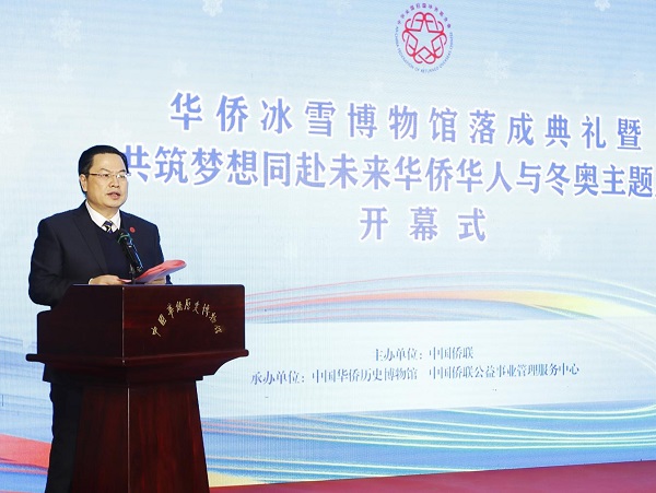 他強調,2019年,中國僑聯向全球華僑華人發出“捐建華僑冰雪博物館”及征集相關展藏品活動倡議書。廣大海外僑胞、歸僑僑眷、僑商僑企和各級僑聯組織積極響應、踴躍參與,充分展現了廣大僑胞心系桑梓、愛國愛鄉的深厚情懷,充分展現了僑界助力國家大事的作為和風采。此次活動的舉辦,是團結引領廣大僑胞更好建功新時代、奮進新征程的具體行動,是以冬奧為紐帶,促進中國與世界友好、推動構建人類命運共同體的具體行動。