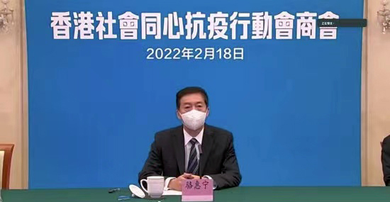 2月18日,中聯辦主任駱惠寧出席香港社會同心抗疫行動會商會(線上)發表講話指出,習近平總書記為香港抗疫指明了努力方向。他指出,抗擊疫情最寶貴的是信心,最重要的是團結,最迫切的是行動。