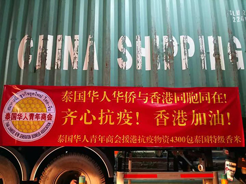 隨后,李嘉淳會長第一時間與會內領導層進行商討確定,在如今祖國赴港醫療物資都充足的情況下,以泰國華人青年商會名義捐贈泰國特色特級茉莉香米4300包較為合適(共計21.5噸),并直接運輸至香港,由香港潮青會代為分發于普通民眾手中,盡泰國華人華僑青年綿薄之力,與香港同胞同心抗疫、共渡難關!