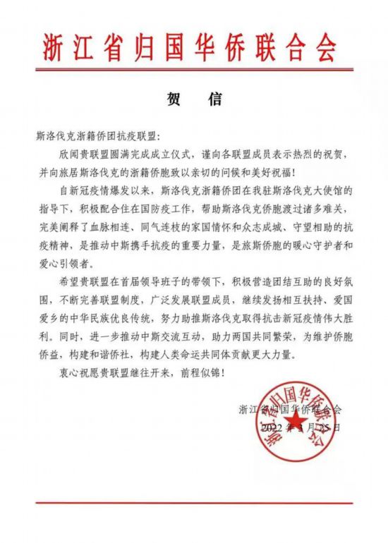 關于成立斯洛伐克浙籍僑團抗疫聯盟加強抗疫協作的聯合聲明