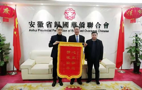 僑胞送來“心系僑胞、情暖僑眷”錦旗表達感謝之情