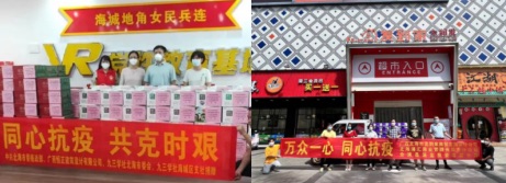 市僑商會常務副會長施麗霞的廣西恒正建筑設計公司向海城區政府、銀海區政府、銀海區僑港鎮政府、銀海區教育局捐贈醫用口罩、連花清瘟膠囊、礦泉水、牛奶等抗疫所需物資。