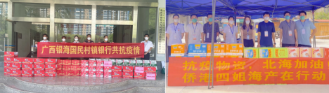市僑商會副會長廖莉所在的廣西銀海國民村鎮銀行黨總支主動聯系政府防疫部門,連夜采購遮陽帳篷等物資,捐贈給銀海區銀灘鎮政府,并為抗疫一線工作人員送去口罩、防護服、食品等物資,同時充分發揮黨員先鋒模范帶頭作用,先后從員工隊伍中抽派黨員23人次,到各個社區開展志愿者服務。