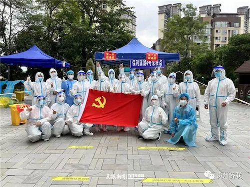貴州僑商會副會長單位貴陽白志祥骨科醫院派出了20名醫護人員馳援花溪區,經過72小時的堅守,共計完成核酸檢測13000余人次。貴州海歸青創會會員牟勇軍參與負責金陽街道和轄區二十個社區的志愿者調度,組織帶領幾百名志愿者參與抗擊疫情。