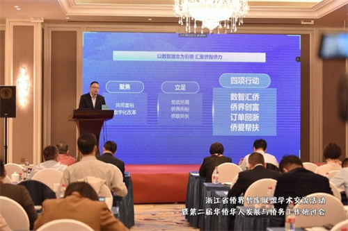 海寧市委統戰部副部長、市僑聯主席、市僑辦主任錢立輝的經驗分享題為“以數智理念為引領匯聚僑智僑力 譜寫同心共富新篇章”。錢立輝談到,海寧市僑聯通過實施“數智匯僑”行動,搭建“僑助共富”新平臺;實施“僑界創富”行動,激活“僑助共富”新動力;實施“訂單回浙”行動,拓展“僑助共富”新領域;實施“僑愛幫扶”行動,展現“僑助共富”新風采四條路徑,團結引導廣大華僑華人、歸僑僑眷、海歸留學人員主動融入共同富裕建設中心大局,以數智理念為引領,不斷匯聚僑智僑力,譜寫同心共富新篇章。
