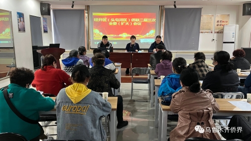4月19日,烏魯木齊市經(jīng)開區(qū)(頭屯河區(qū))僑聯(lián)二屆三次全體委員會在鋼城片區(qū)管委會洛克倫“僑胞之家”召開。區(qū)僑聯(lián)主席許麗、副主席王軍及僑聯(lián)委員20人參加會議。