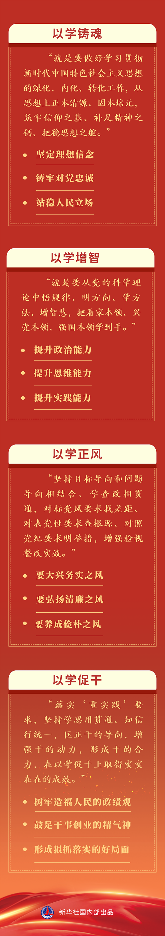 以學鑄魂推動精神洗禮,以學增智強化能力提升,以學正風促進作風轉變,以學促干推動事業發展。