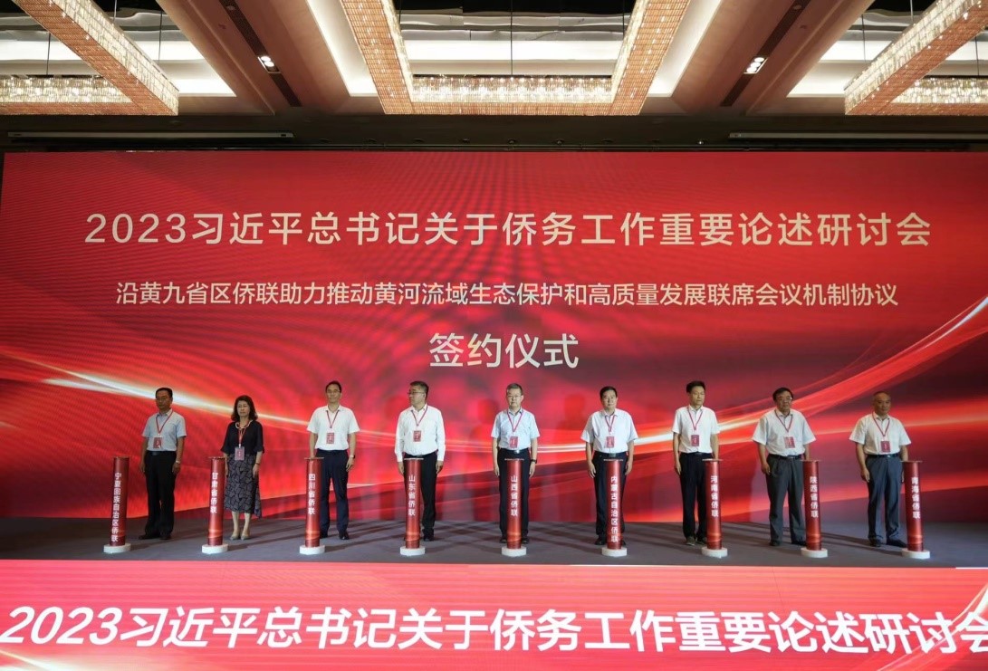 為貫徹落實黃河流域生態保護和高質量發展戰略,經山東省僑聯提議,青海、四川、甘肅、陜西、寧夏、內蒙古、山西、河南、山東等九省區僑聯在會上簽署《沿黃九省區僑聯助力推動黃河流域生態保護和高質量發展聯席會議機制協議》。