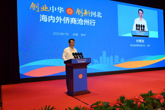 27日上午,付輝東出席招商推介會并講話。他指出,“創中華·創新河北”海內外僑商滄州行活動是中國僑聯、河北省僑聯支持滄州利用僑界資源,助力滄州對外開放、招商引資的重要平臺。希望僑商朋友們堅持以僑為本、互幫互助,爭做新時代優秀企業家精神的弘揚者;堅持圍繞中心、服務大局,爭做助推經濟社會發展的生力軍;堅持國際視野、擴大合作,爭做譜寫中國式現代化建設河北篇章的踐行者。僑聯作為黨和政府聯系廣大歸僑僑眷和海外僑胞的橋梁紐帶,將一如既往地為僑資企業發展做好服務,當好僑資企業的“貼心人”,為僑資企業在冀、在滄投資興業、發展壯大保駕護航。