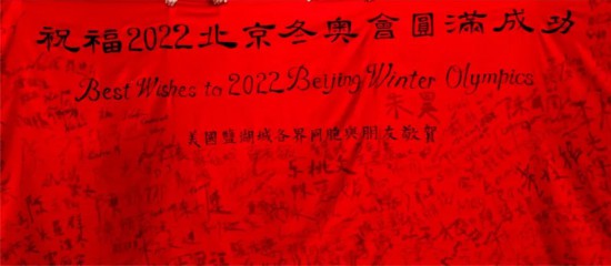 鹽湖城各界同胞“祝福2022北京冬奧會圓滿成功”簽名條幅(局部)