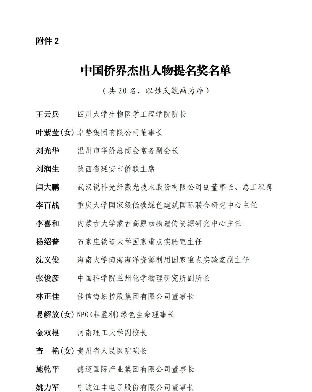 2.中國僑界杰出人物提名獎名單