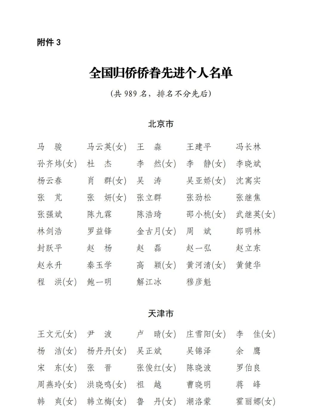 為大力弘揚廣大歸僑僑眷的拼搏進取和愛國奉獻精神,宣傳他們立足本職、建功立業的先進事跡,中國僑聯、國務院僑務辦公室決定:授予白重恩等10名同志“中國僑界杰出人物”榮譽稱號;授予王云兵等20名同志“中國僑界杰出人物提名獎”榮譽稱號;授予馬駿等989名同志“全國歸僑僑眷先進個人”榮譽稱號。希望受到表彰的同志珍惜榮譽,再接再厲,努力在新時代新征程上再創新業、再立新功。