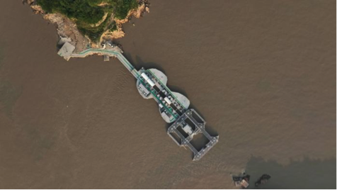 飛越浙江舟山,青山綠水間,中國首座海洋潮流能發電站就在眼前。發電機組總成平臺狀如一把巨大的“小提琴”,潮漲潮落之際,源源不斷地向國家電網輸送著來自海洋的清潔能源。