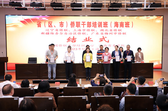 本期培訓(xùn)班由中國僑聯(lián)干部培訓(xùn)中心、遼寧省僑聯(lián)、上海市僑聯(lián)、湖北省僑聯(lián)、新疆維吾爾自治區(qū)僑聯(lián)、廣東省梅州市僑聯(lián)以及海南省委黨校共同舉辦。遼寧省僑聯(lián)黨組成員、副主席崔明,湖北省僑聯(lián)黨組成員、副主席王慧萍,新疆維吾爾自治區(qū)僑聯(lián)兼職副主席陳少欽,梅州市僑聯(lián)黨組成員、副主席王映萍出席結(jié)業(yè)式,來自五省(區(qū)、市)僑聯(lián)的213名僑聯(lián)干部參訓(xùn)學(xué)習(xí)。