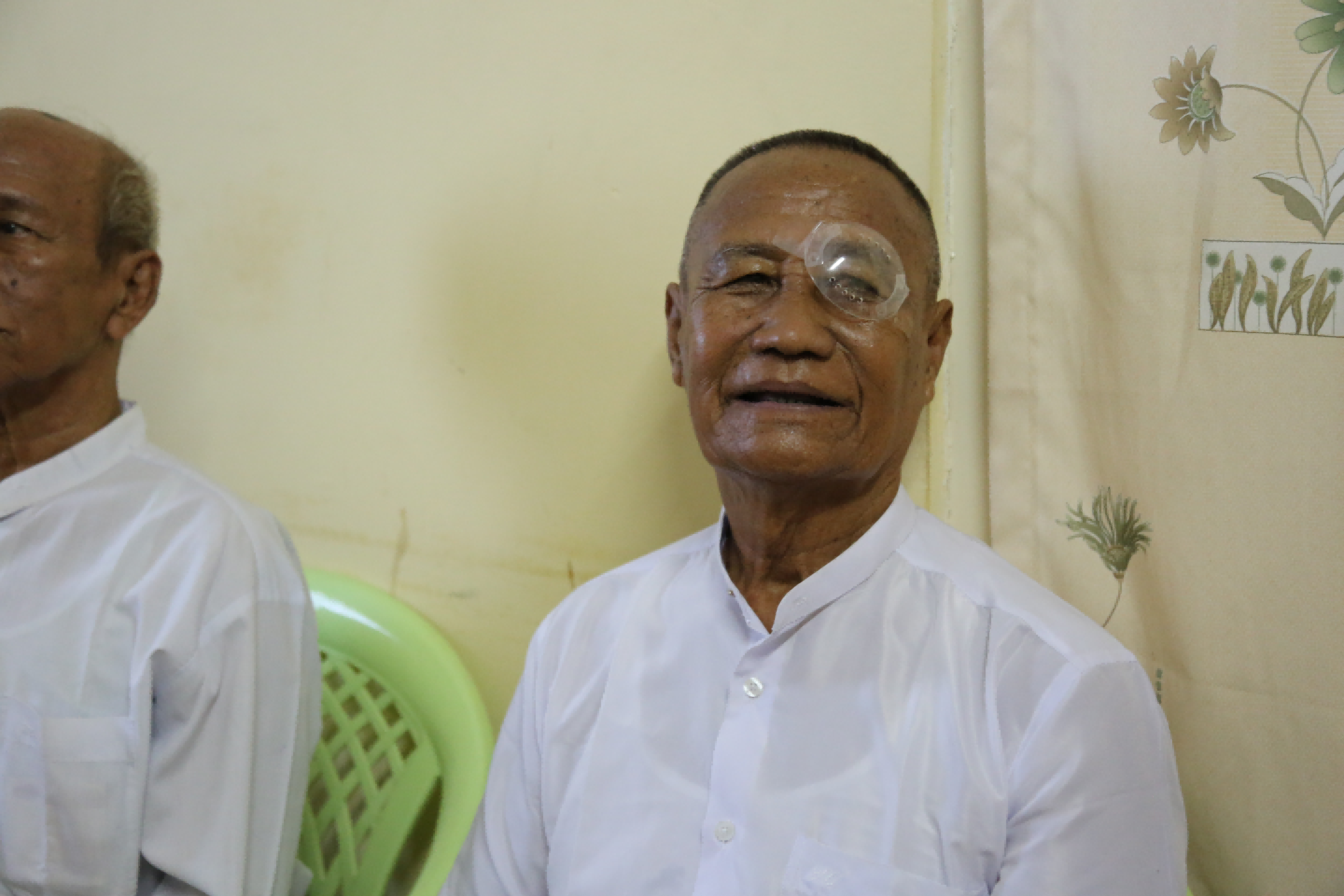 來自仰光達美鎮區的吳昂溫時年81歲高齡,因左眼白內障,看東西一片模糊,另一只眼視力不好也看不清楚。在中國醫療隊幫他免費做完手術后,他驚喜地發現夠清晰地看到遠處的一扇門,左眼裸眼視力達到了0.8。“手術后一切都順利,傷口恢復非常好,打開紗布,現在透過(塑料眼部保護罩上的)小孔能看清楚,真是太好了,太高興了。”