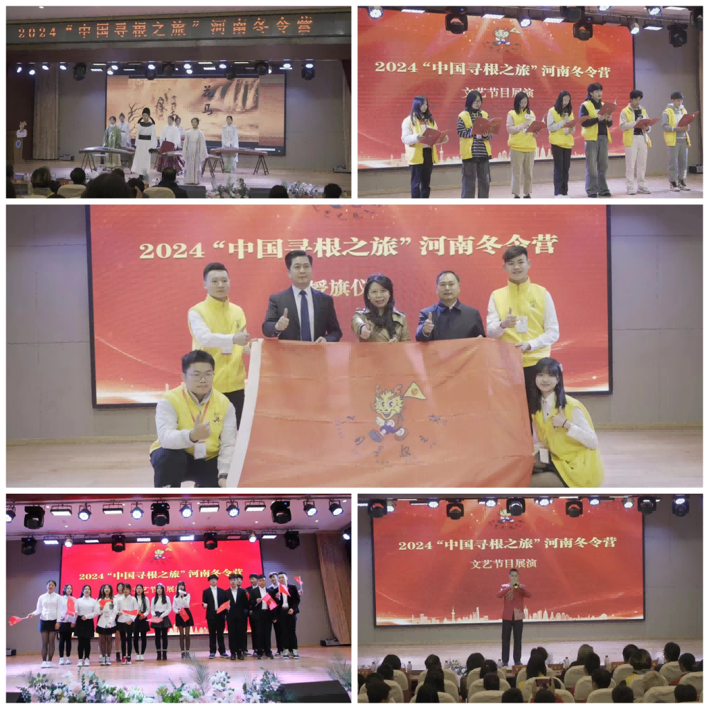 開營儀式上,呂劍、牛海堂、陳向輝向營員代表授旗。全體營員領隊及管城區外國語學校學生代表共同觀看了河南省情宣傳片,聆聽了冬令營的營歌——《黃帝頌》,并見證了莊嚴的授旗儀式。2024“中國尋根之旅”河南冬令營參營單位還帶來了詩朗誦《江河》、歌曲《朋友》和管外學生演出《春節的由來+將進酒》、嗩吶獨奏《百鳥朝鳳》等節目。