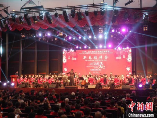 當(dāng)?shù)貢r(shí)間2月24日晚,2024年“四海同春”訪演活動(dòng)在馬來(lái)西亞檳城舉行。圖為馬來(lái)西亞當(dāng)?shù)厝A樂(lè)團(tuán)表演《載歌載舞慶佳節(jié)》。 中新社記者 陳悅 攝