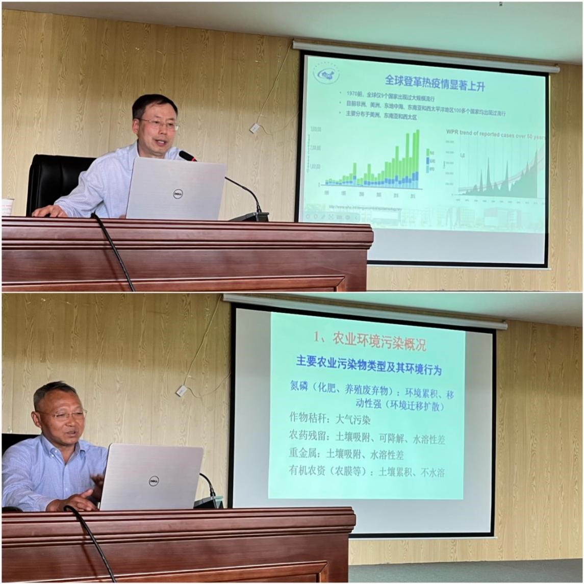 啟動儀式后,圍繞當地關切的熱帶疾病防控和生態農業有關需求,殷文武以《登革熱的預防》為題做報告,梳理了登革熱病毒的主要傳播蚊媒和傳播過程,分析了全球疫情趨勢和季節性特點,結合全球防控戰略和相關技術文件提出防控建議。吳金水以《農業環境污染與治理對策》為題做報告,解讀了我國農業面源污染狀況,指出農業污染治理中的突出問題,結合云南當地情況,提出有效控制農業面源污染的策略及有關應用案例。