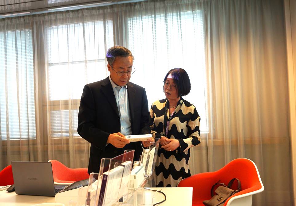 在赫爾辛基科技園區(qū)華人生物科技企業(yè)調(diào)研時,萬立駿詳細(xì)了解園區(qū)運(yùn)行模式、發(fā)展方向和企業(yè)的研發(fā)重點(diǎn)、銷售模式、人才結(jié)構(gòu)以及生物醫(yī)藥材料設(shè)備等開發(fā)情況。他表示,中國高度重視生物醫(yī)藥等科技創(chuàng)新工作,發(fā)展新質(zhì)生產(chǎn)力、建設(shè)創(chuàng)新型國家,不僅需要大批海內(nèi)外科技人才,也需要加強(qiáng)科技創(chuàng)新領(lǐng)域的國際交流合作。他希望在芬蘭的僑界科技人才立足當(dāng)?shù)亍⒚嫦蚴澜纾闇?zhǔn)創(chuàng)新和應(yīng)用的前沿,加強(qiáng)與國內(nèi)的交流合作,在實(shí)現(xiàn)自身更好發(fā)展的同時為推動中芬兩國科技創(chuàng)新和技術(shù)進(jìn)步作貢獻(xiàn)。