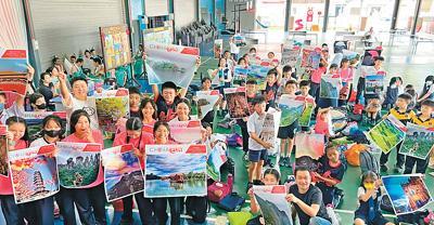 馬來西亞啟新學(xué)校學(xué)生展示海報。