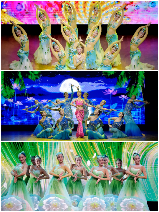 當晚7時許,在悠揚的《茉莉花開》樂曲中,演出正式拉開帷幕。歌曲《牽手》道出祖國與僑胞“山海不為遠,千里心相連”的深厚情誼,舞蹈《吉祥孔雀》仿佛帶領觀眾走近一群翩然的美麗精靈,魔術《東方色彩》則將東方神韻與現代魔術魅力巧妙融合……約兩小時的演出期間,陣陣掌聲、喝彩聲此起彼伏。