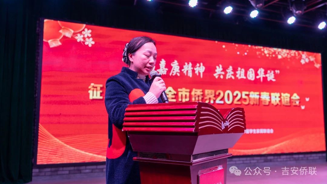 12月25日,“弘揚嘉庚精神 共慶祖國華誕”征文頒獎暨吉安市僑界2025新春聯(lián)誼會成功舉辦,省僑聯(lián)黨組成員、副主席郭子新,省僑聯(lián)兼職副主席、省僑創(chuàng)聯(lián)盟理事長吳世偉,省僑聯(lián)兼職副主席李忻農(nóng),市委副秘書長張菊明,市僑聯(lián)黨組書記、主席胡紅英等出席并為獲獎?wù)吆途栀浾哳C發(fā)榮譽證書(獎牌)。省僑聯(lián)有關(guān)部室負責人,市直各涉僑單位、市監(jiān)委駐市委宣傳部紀檢監(jiān)察組負責同志到會指導(dǎo),美國加州江西商會會長李京文等海外僑團僑領(lǐng)代表,市僑聯(lián)名譽主席、名譽顧問代表應(yīng)邀出席,市僑聯(lián)班子成員,市僑聯(lián)法顧委、市留屬會班子成員,市新僑創(chuàng)新創(chuàng)業(yè)聯(lián)盟全體成員及井岡山經(jīng)開區(qū)、各縣(市、區(qū))、廬陵新區(qū)僑聯(lián)主要負責人及僑界群眾代表共計300余人參加活動。