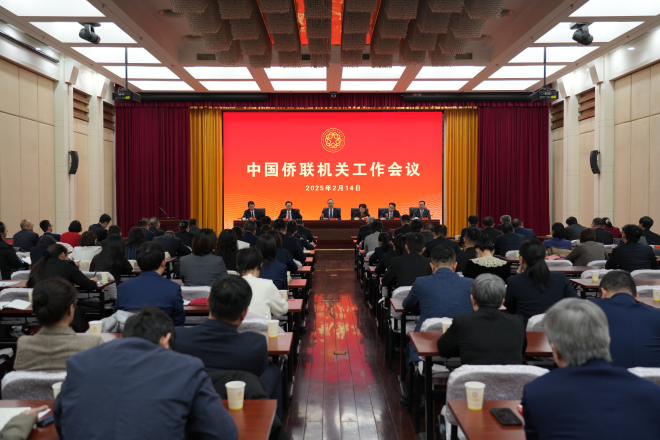 2月14日下午,中國(guó)僑聯(lián)召開(kāi)2025年機(jī)關(guān)工作會(huì)議。會(huì)議以習(xí)近平新時(shí)代中國(guó)特色社會(huì)主義思想為指導(dǎo),全面貫徹落實(shí)黨的二十大和二十屆二中、三中全會(huì)精神,深入學(xué)習(xí)貫徹習(xí)近平總書(shū)記關(guān)于僑務(wù)工作和群團(tuán)工作的重要論述,貫徹落實(shí)中央書(shū)記處重要指示要求,落實(shí)十一代會(huì)和十一屆三次全委會(huì)議精神,總結(jié)2024年工作,表彰年度先進(jìn),部署2025年工作,以改革精神推動(dòng)僑聯(lián)工作不斷取得新進(jìn)步。中國(guó)僑聯(lián)黨組書(shū)記、主席萬(wàn)立駿出席會(huì)議并講話,副主席程紅宣讀《關(guān)于2024年度中國(guó)僑聯(lián)有關(guān)集體和個(gè)人獲得表彰情況的通報(bào)》,黨組成員、副主席程學(xué)源主持會(huì)議,黨組成員、副主席連小敏宣讀中國(guó)僑聯(lián)2024年度考核優(yōu)秀人員名單,副主席高峰、秘書(shū)長(zhǎng)陳邁出席會(huì)議。