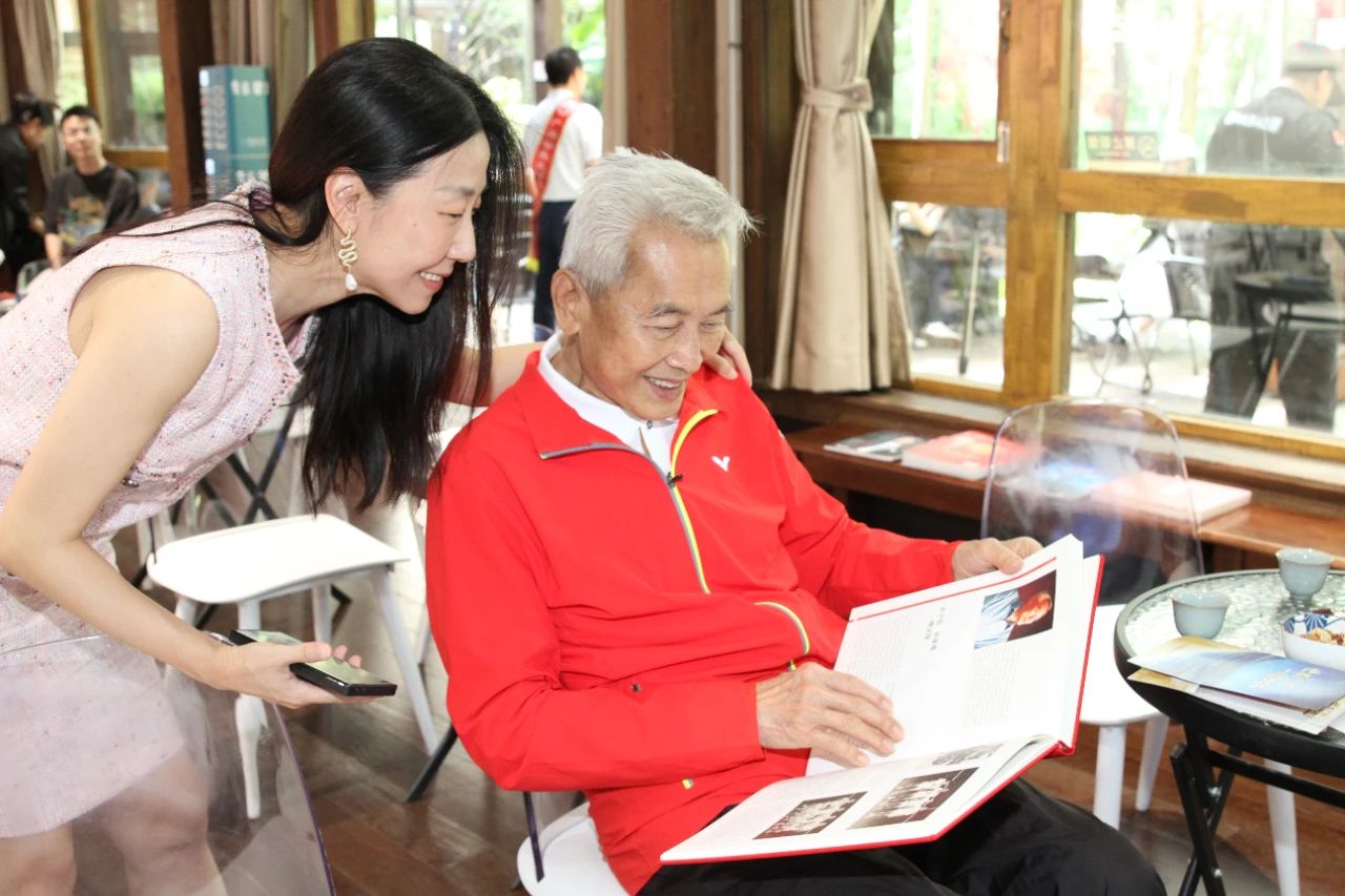4月15日下午,參加“世界廣闊 一起合伙”僑領共話十五運活動的廣州羽壇“教父”、廣州市政協原副主席傅漢洵先生在“灣區書屋·廣州茶居”僑心書苑與女兒一同翻閱重溫《百年僑力量》(廣州市歸國華僑聯合會 編,中國華僑出版社,2022年)