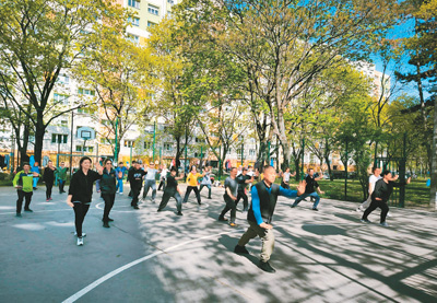 經過兩個月堅持練習,這名學生已能連貫打完二十四式。呂廣義說:“練太極拳后,他心率正常了,氣息也順暢了。”練習太極拳如同為身體安裝修復器,動作柔和卻帶動全身運動,既滋養氣血又促進康復。
