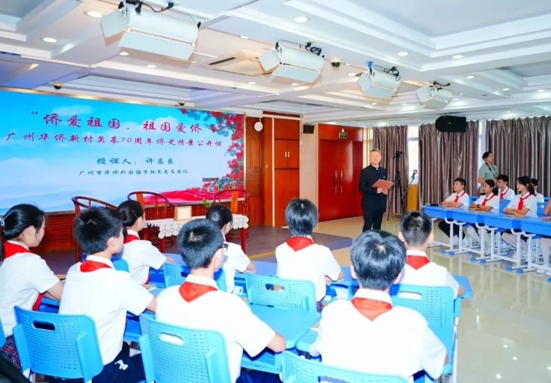 活動以一場穿越歷史的沉浸式僑史情景公開課為核心亮點,由廣州市華僑外國語學校黨總支書記許昌良擔任主講人,以“往昔?僑愛筑家園”“今朝?祖國護僑情”“明日?僑心向未來”三幕敘事結構,串聯起華僑新村70年風雨歷程。