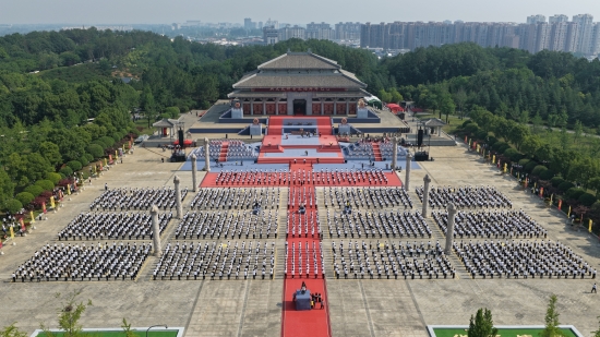 大典共有九項(xiàng)儀程: 起鼓鳴鐘、恭啟圣門、點(diǎn)燃新火、敬獻(xiàn)花籃、香敬始祖、恭讀頌文、共拜始祖、唱誦始祖、瞻仰圣像。來自政界、文化界、宗教界、企業(yè)界、我國港澳臺(tái)和海外華僑華人代表及社會(huì)各界嘉賓近2700人在現(xiàn)場參加大典。