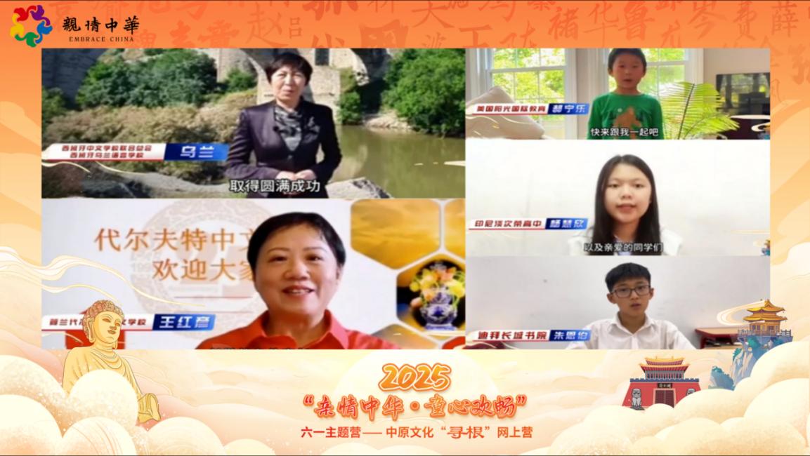 5月28日,由中國僑聯、河南省僑聯共同主辦的2025“親情中華·童心歡暢”六一主題營——中原文化尋根網上營活動在鄭州大學舉行開營儀式。來自全球235所華校的老師和學生們跨越時空,以云端相聚的方式開啟了一場以“華夏文明 黃河脈動”為主題的“尋根之旅”。中國僑聯黨組書記、主席萬立駿向全球華裔青少年發來祝福視頻。中國僑聯文化交流部副部長郭啟華,河南省僑聯副主席呂劍,鄭州大學副校長王海杰出席活動并致辭。開營儀式由中國僑聯文化交流部副部長車壯麗主持。