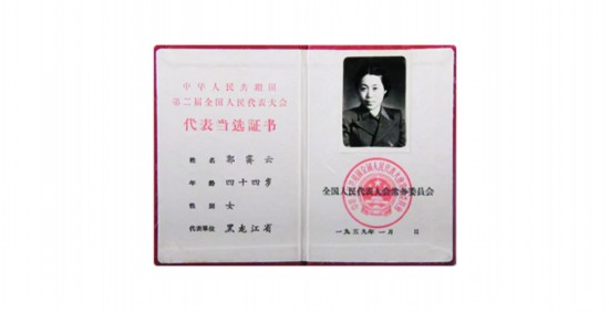 郭霽云當選第二屆全國人大代表證