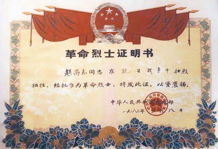 趙尚志犧牲四十周年之際,1982年6月8日,中共黑龍江省委發布關于《恢復趙尚志同志黨籍的決定》。文件指出,趙尚志同志的一生忠誠黨的事業,是個堅貞的共產主義戰士。他在……民族解放戰爭中,堅強不屈,英勇奮斗,作出了重大貢獻,直至獻出了自己寶貴的生命。開除趙尚志同志黨籍的決定是錯誤的,是一起歷史冤案。省委決定,撤銷1940年1月中共北滿省委《關于開除趙尚志同志黨籍的決定》,恢復趙尚志黨籍,推倒強加給趙尚志的一切不實之詞,恢復名譽。