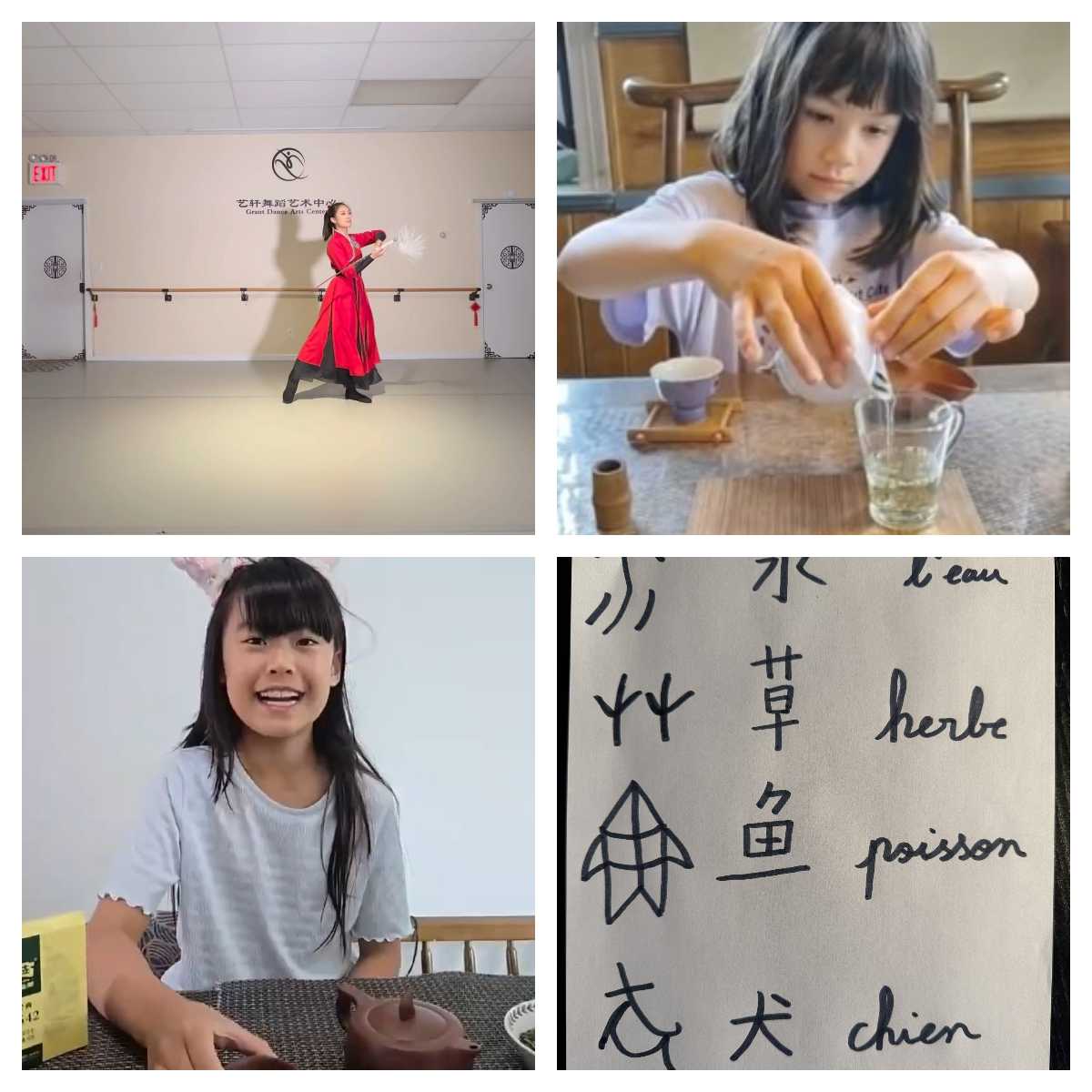 還有營員通過短視頻展示學習的茶藝、劍舞和甲骨文書寫。